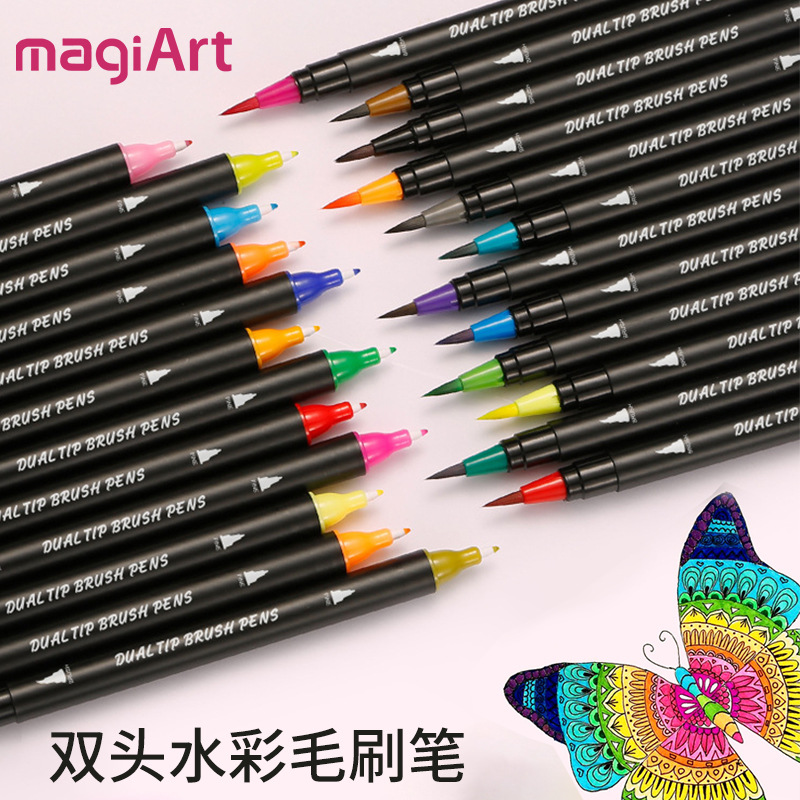 Amazonオーダーメイドダブルヘッド水彩ペン24色ソフトヘッドカラー絵画ペンセットブラシペンフックペン卸売