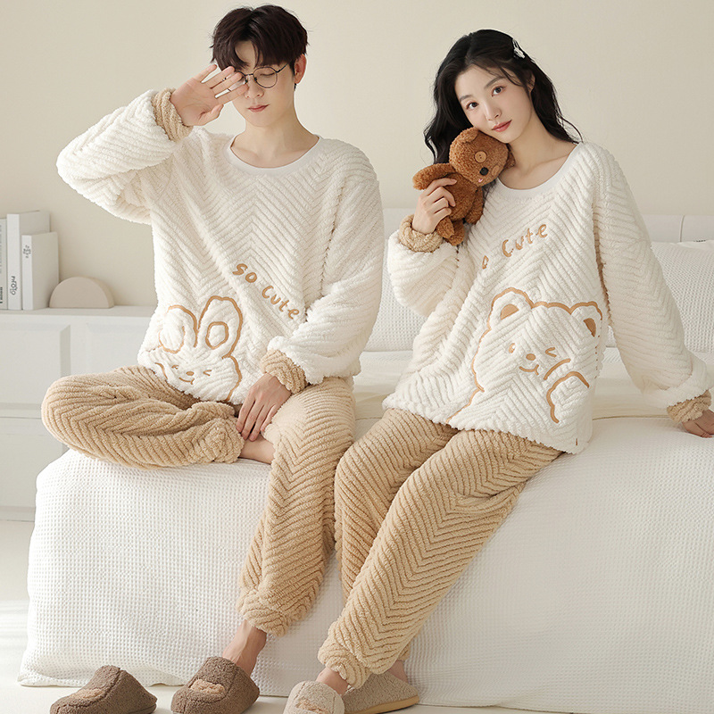 フランネルのパジャマの女性は冬に保温して、少女のサンゴのベルベットを2セット厚くして、カップルのパジャマ男を着ることができる