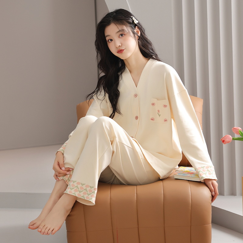 新しいパジャマ女性のための春と秋の純粋な綿長袖ズボン綿韓国漫画少女秋と冬のホームウェアセット
