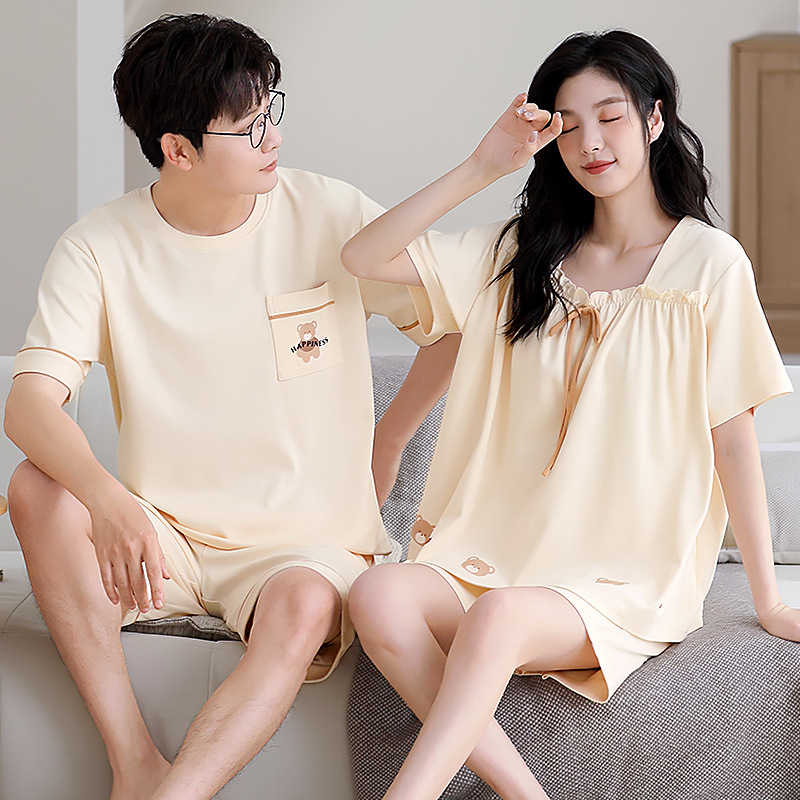 カップルパジャマ夏純綿半袖セット夏新作アニメかわいい男女可外着ホームウェアセット