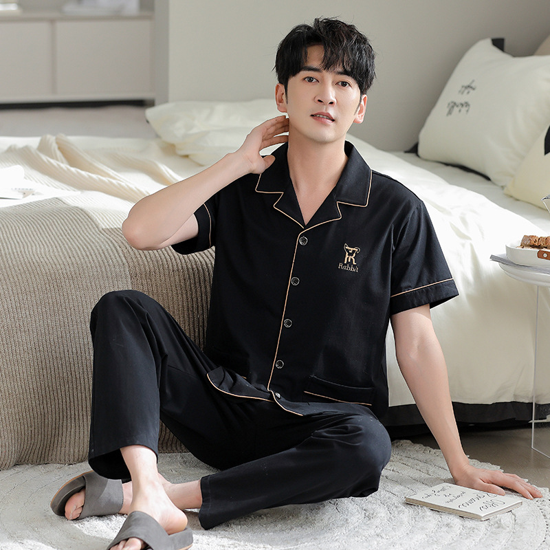 夏の新商品の男性パジャマは綿のカーディガンの半袖のズボンのゆったりした大きいサイズのカジュアルな家庭服を詰めて外に着ることができます。