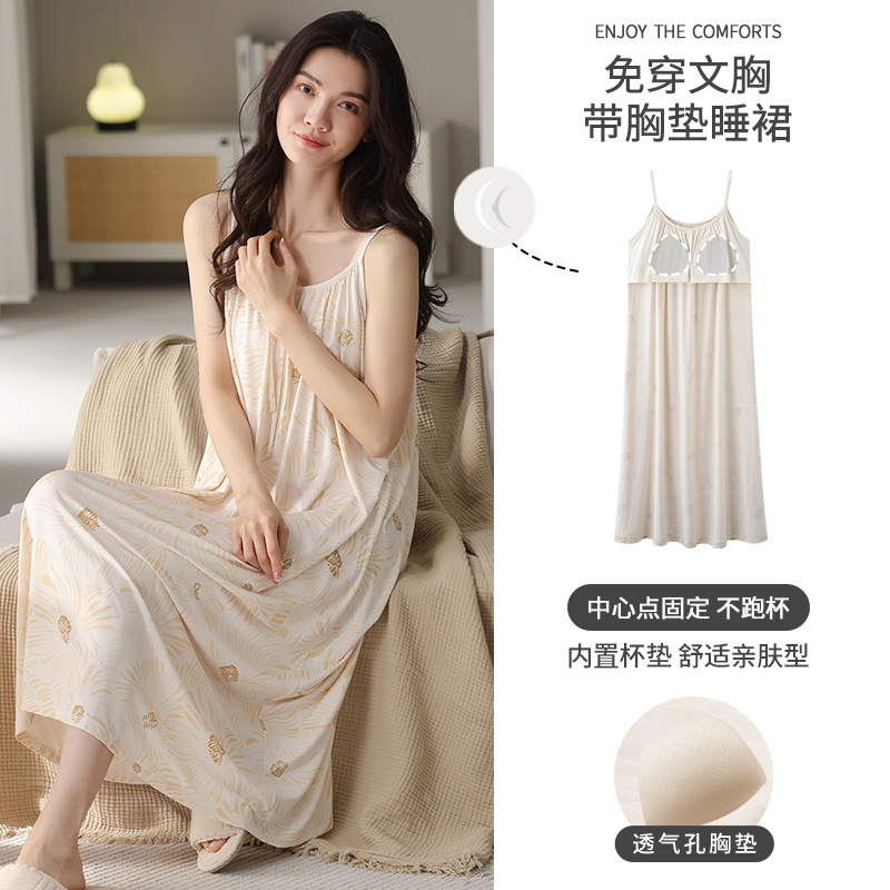 胸パッド付きパジャマ女性夏の新商品綿の大きいサイズは丸首の薄い綿の半袖半ズボンの家の服を着ることができます。