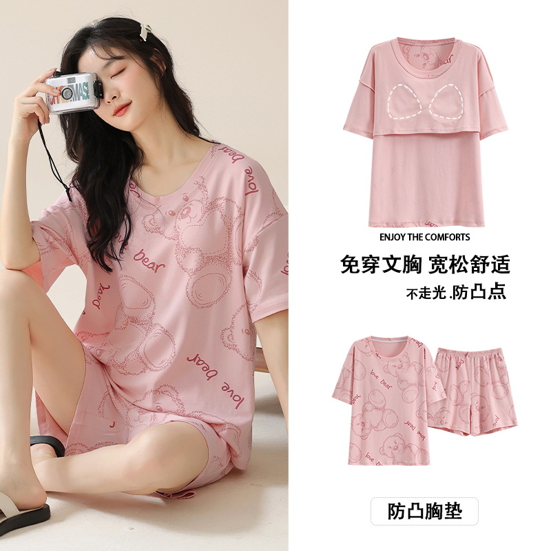 胸パッド付きパジャマ女性夏綿半袖はアニメのかわいい少女学生綿の家庭服セットを着ることができる