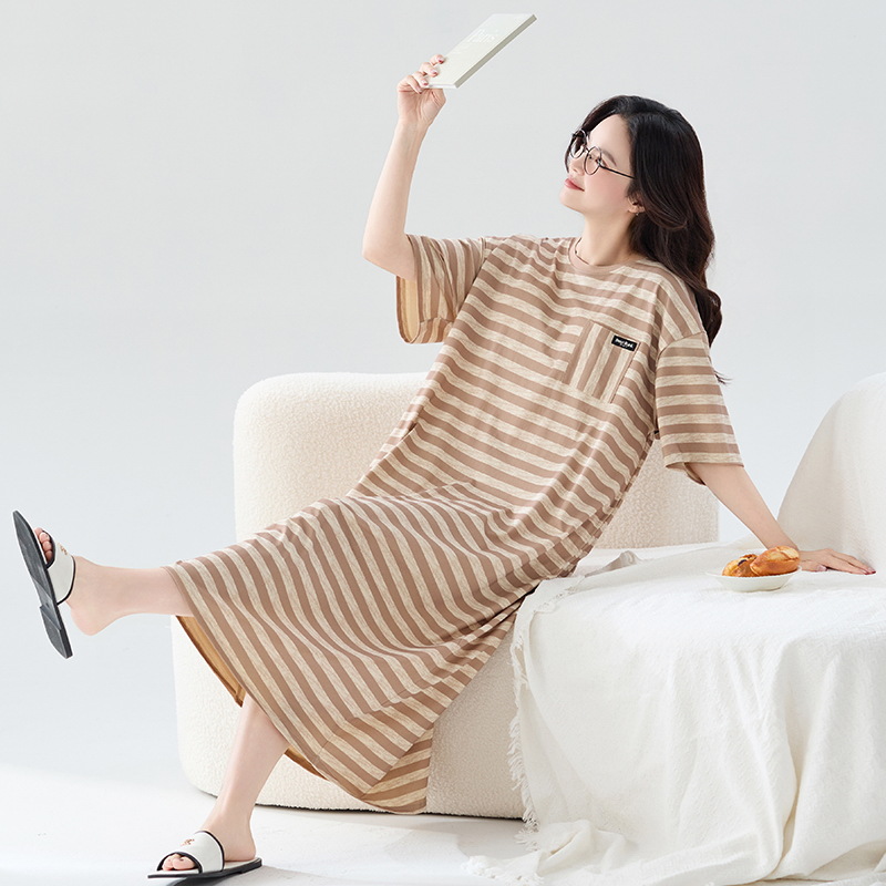 7a抗菌パジャマ女性夏純綿半袖ミディアムワンピース女性大きいサイズ妊婦ホームウェア新作