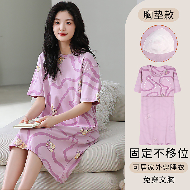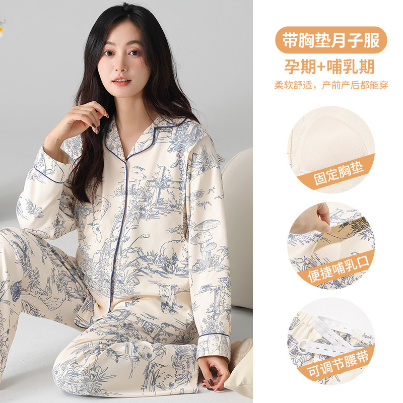 春夏の新型純綿パジャマ女性妊婦は胸パッド付きカーディガンの家庭服を持っています。