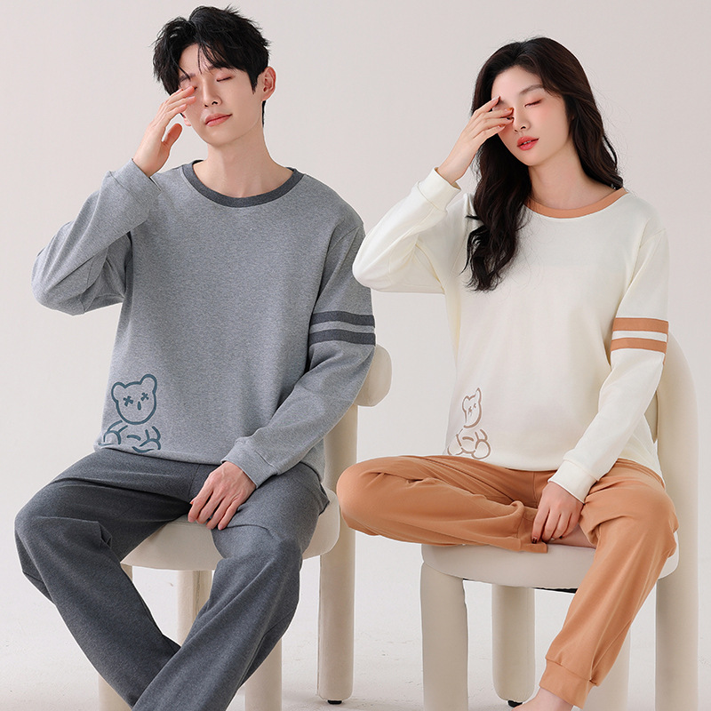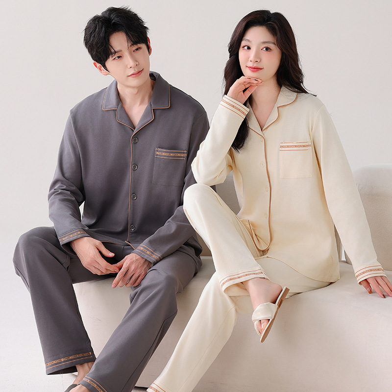 カップルの純綿パジャマの女性の春と秋の長袖のカーディガンはカジュアルで、大きいサイズの男性の綿の部屋の服を着ることができます。