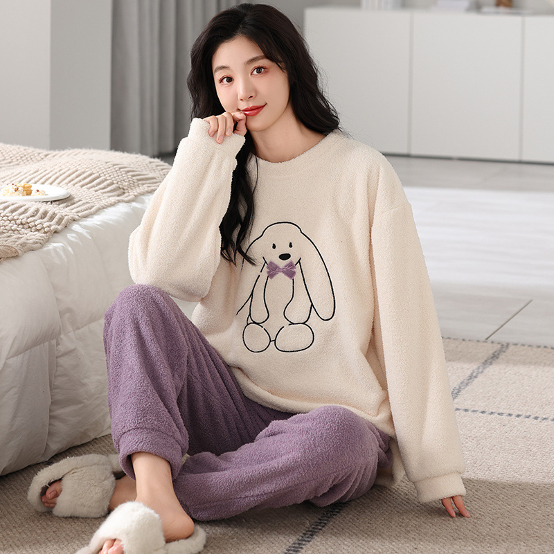 ベルベットのパジャマ女性は冬にベルベットを厚くして、女性の秋冬フランネルの保温冬の女性の家庭服セット