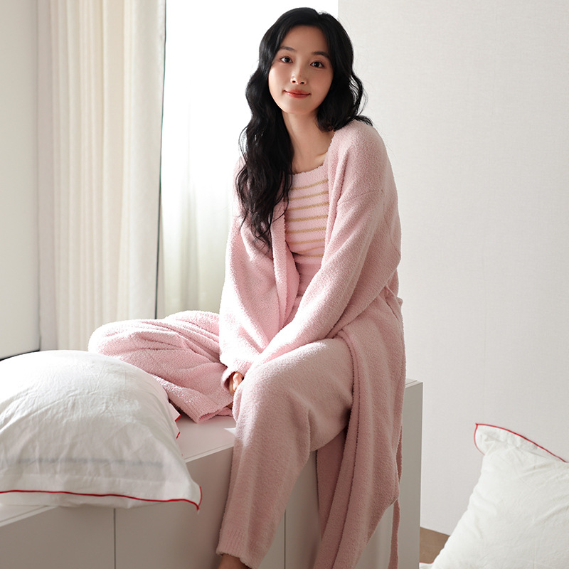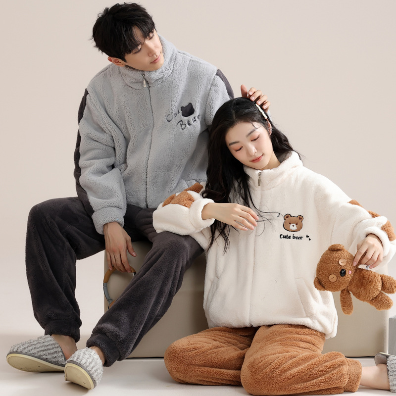 海島毛カップルパジャマ女性長袖秋冬新作厚手ベルベット冬バスローブパジャマホームウェア男性