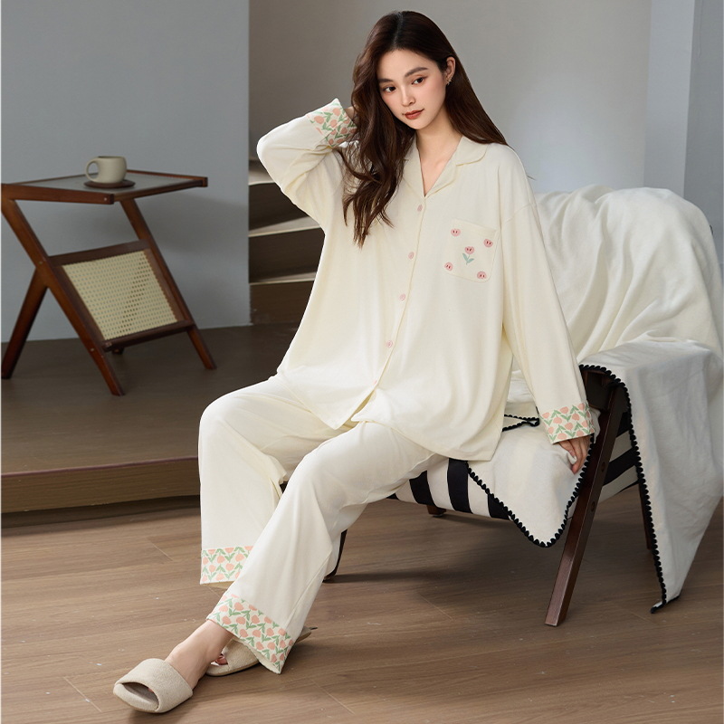 パジャマの女性の秋冬の発熱の徳の絨毯の蓄熱の保温の襟のカーディガンの長袖のズボンの大きいサイズの部屋の服のスーツ