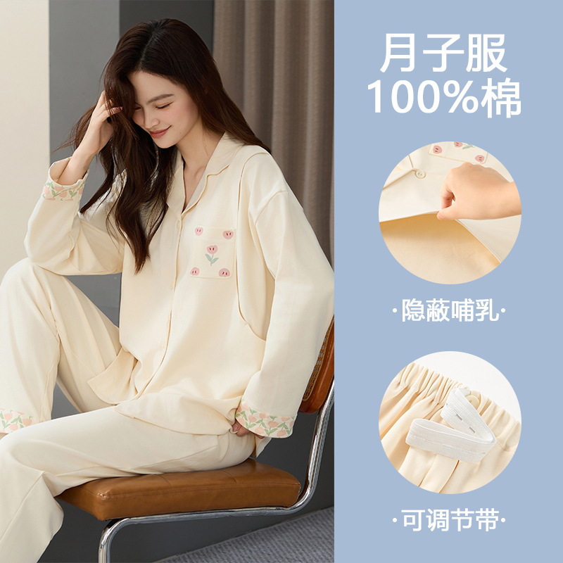 妊婦の月子服秋の冬の産後の純綿の授乳の襟の側の口の純綿のパジャマの妊娠期間の産後は腰を緩めます。