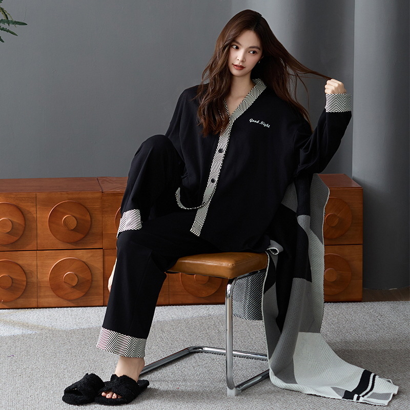 【7a抗菌】純綿パジャマ女性春と秋の女性長袖長ズボン女性vネック純綿ルームウェアセット