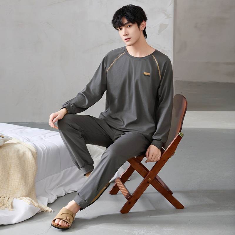 【7a抗菌】パジャマ男性の新しい丸首の頭の純綿の長袖の大きいサイズの秋の綿の家の服のスーツ