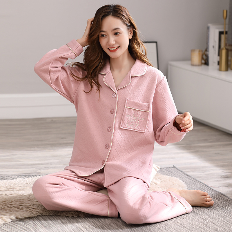 厚手の純綿パジャマさん秋冬の空気綿の襟折りカーディガン
