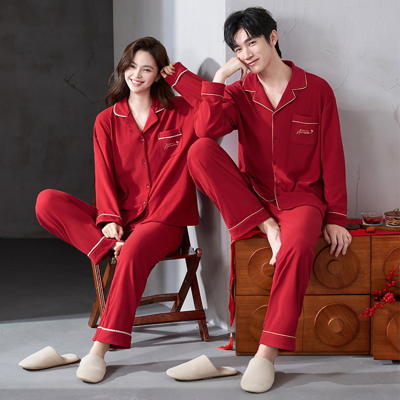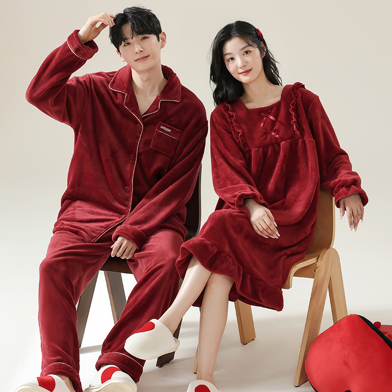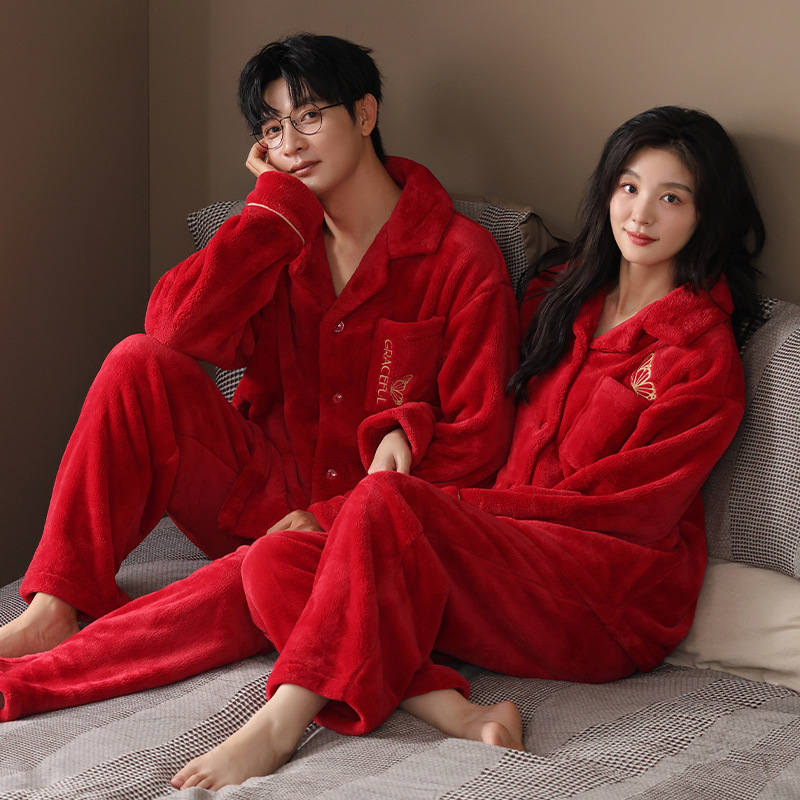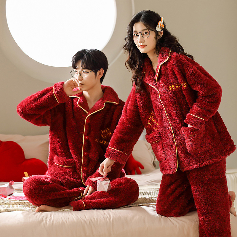 結婚パジャマカップル秋冬徳絨毯蓄熱保温パジャマ大紅新作新婚祝いホームウェアセット
