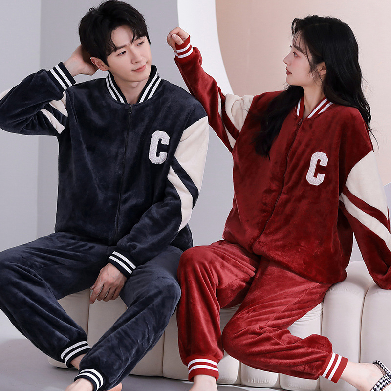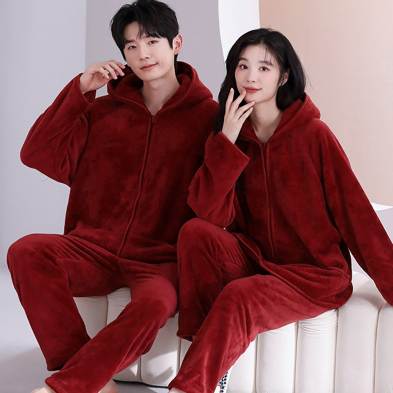 カップルパジャマ女性冬コーラルベルベット厚い暖かいジッパースポーツ风赤い本命年フランネルホームウェア