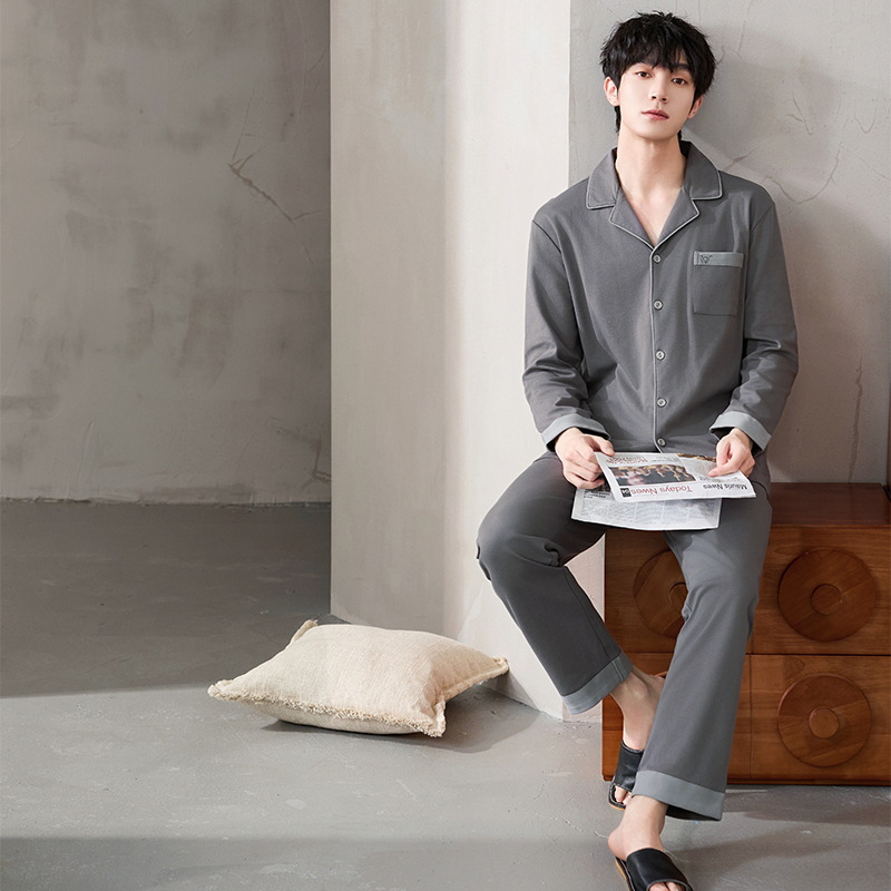 【7a抗菌】パジャマ男性春秋新作純綿長袖カーディガン大サイズ秋純綿ルームウェアセット