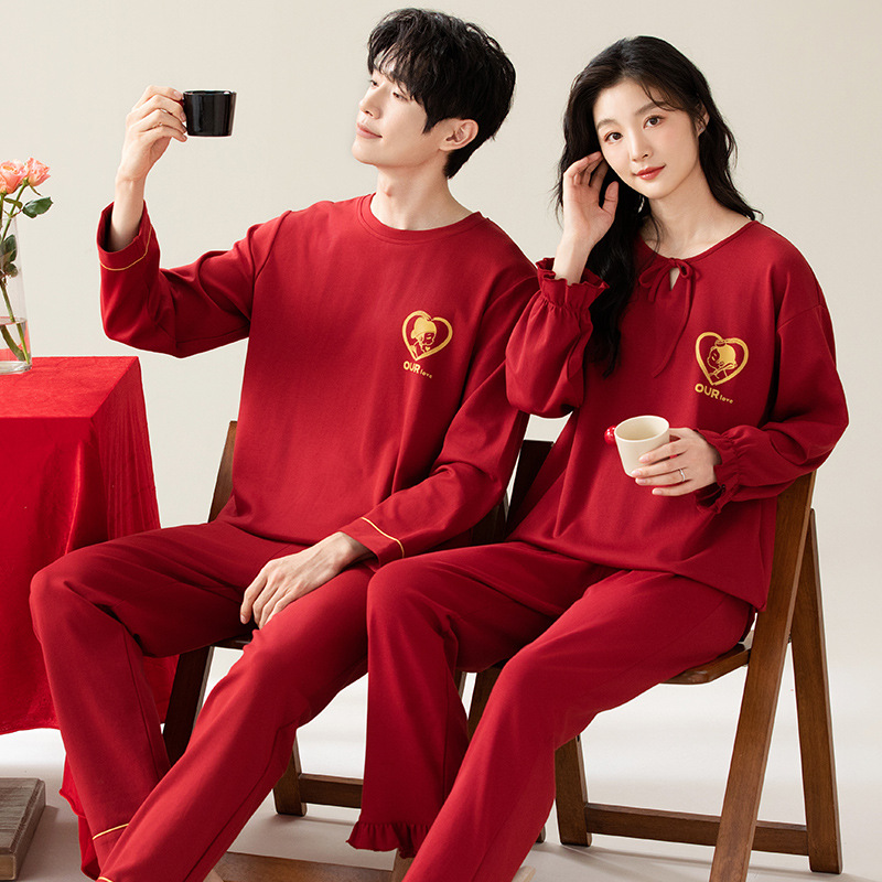純綿カップルパジャマ秋冬新婚結婚赤い本命年家庭服新型国風綿長袖セット