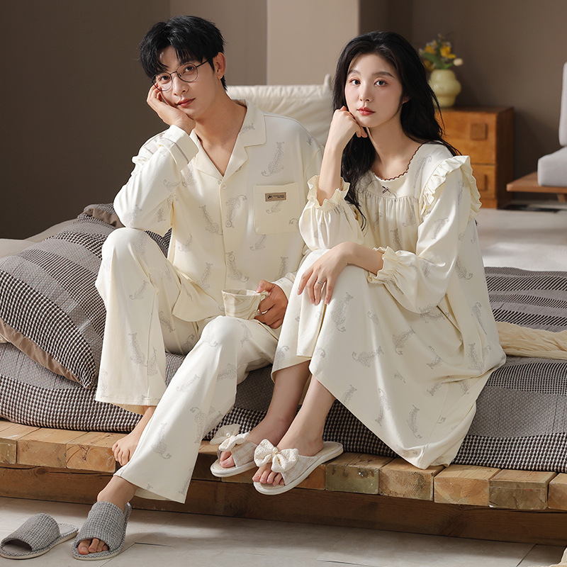 お姫様風寝スカートカップルパジャマ長袖プルオーバー綿春秋新作アンドロメダ純綿ホームウェアメンズスーツ