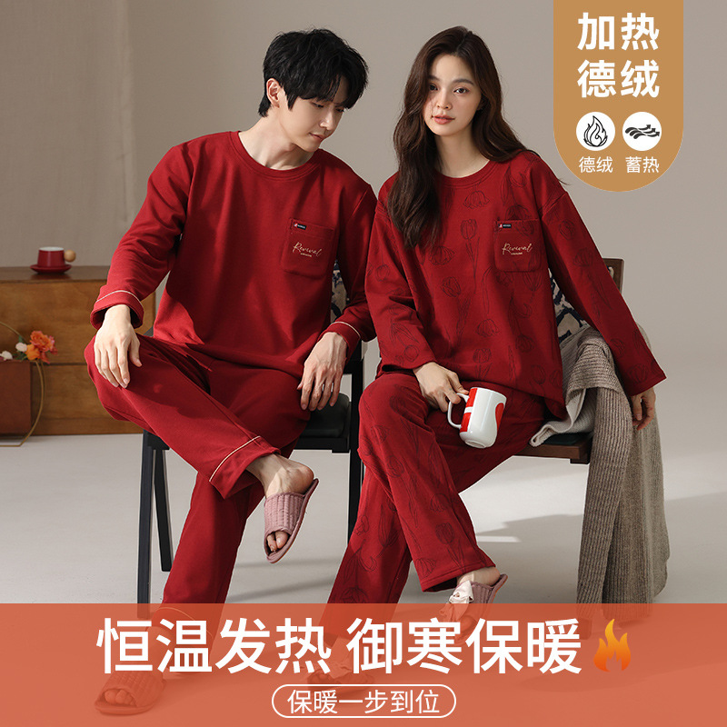 新型秋冬徳絨毛蓄熱大紅カップルパジャマ厚手保温結婚本命年男女結婚ホームウェア