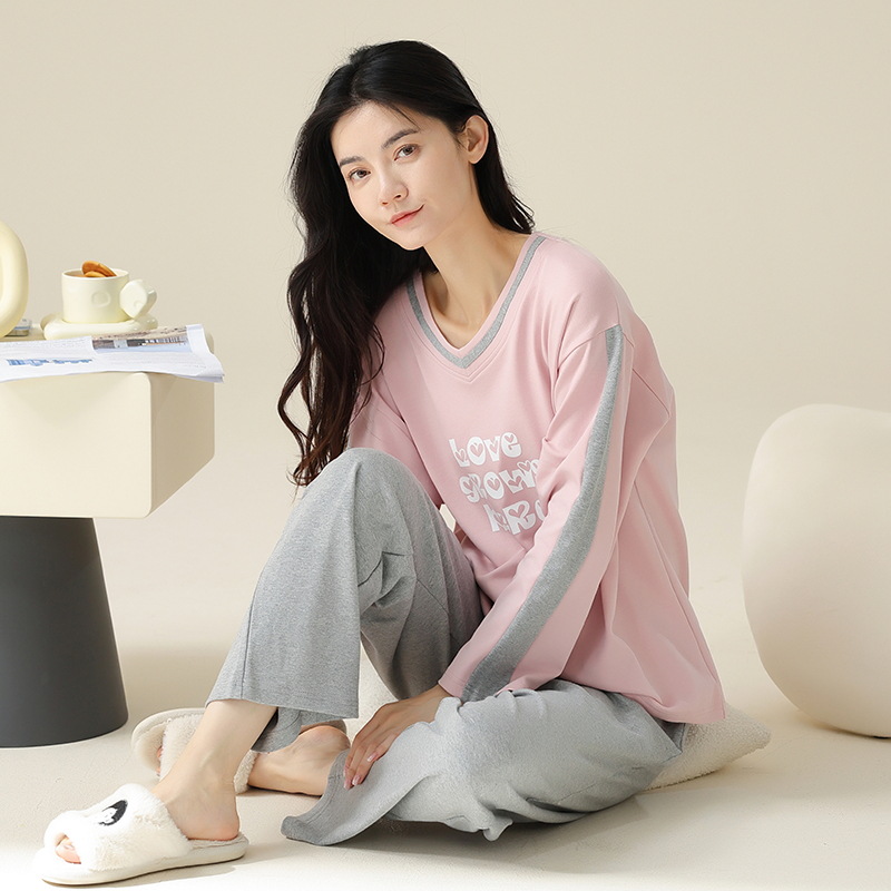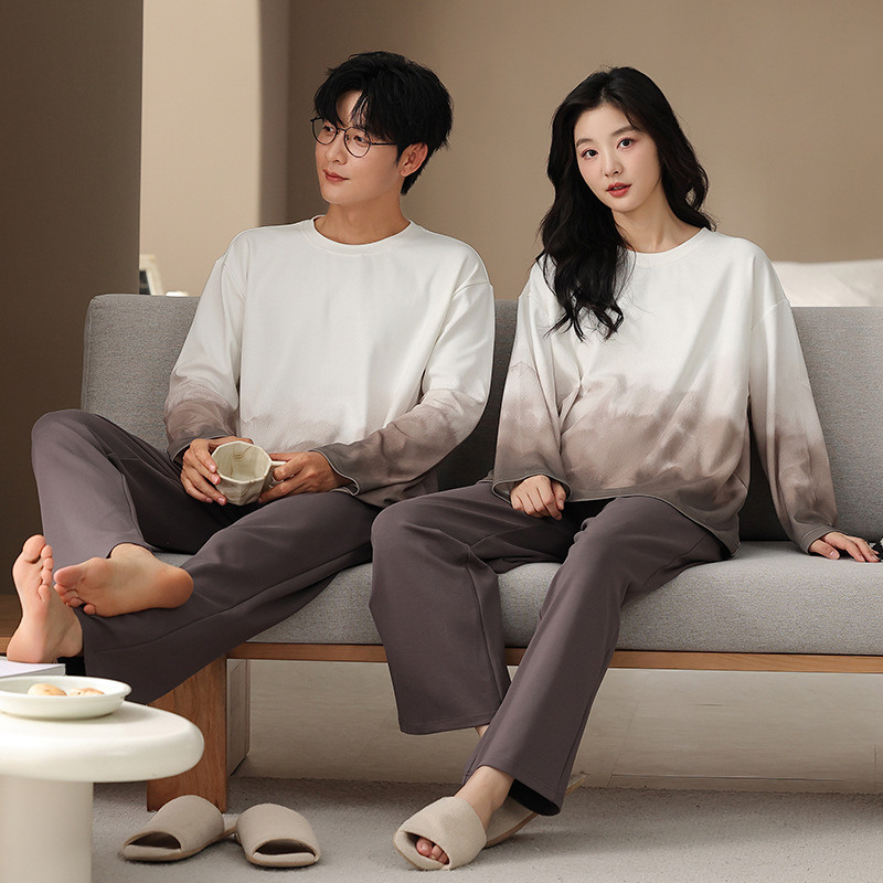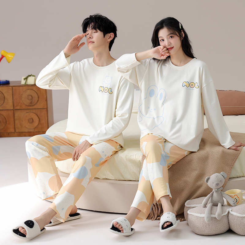 カップルパジャマ女性長袖秋冬新作プルオーバーゆったり大きいサイズ男性純綿ホームウェアセット外着可