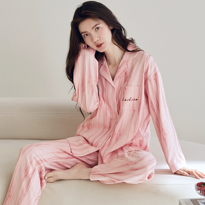 秋冬の新型純綿パジャマ女性襟開きカーディガン長袖長ズボン2点セット綿カジュアル女性ホームウェア