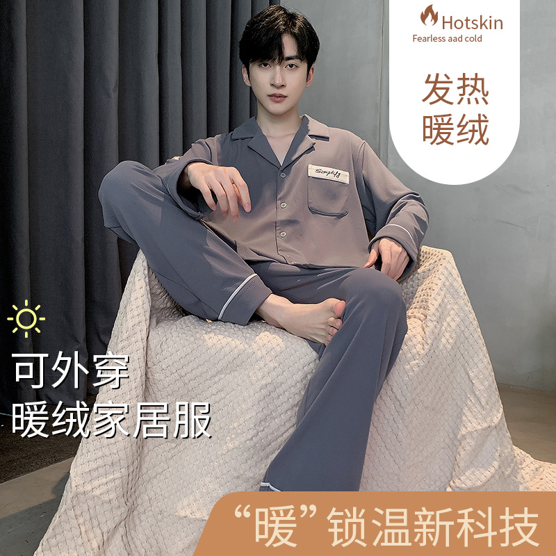 徳絨毛パジャマ男性秋冬保温カジュアル襟付きカーディガン長袖冬の薄い絨毛の蓄熱は家の服を着ることができます。