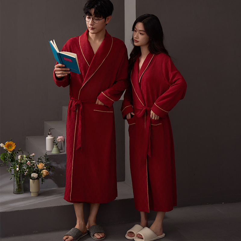 赤いパジャマの結婚棚のさわやかな綿のカップルの部屋の服のカーディガンの男性の部屋の服のスーツの純綿の女性の寝服