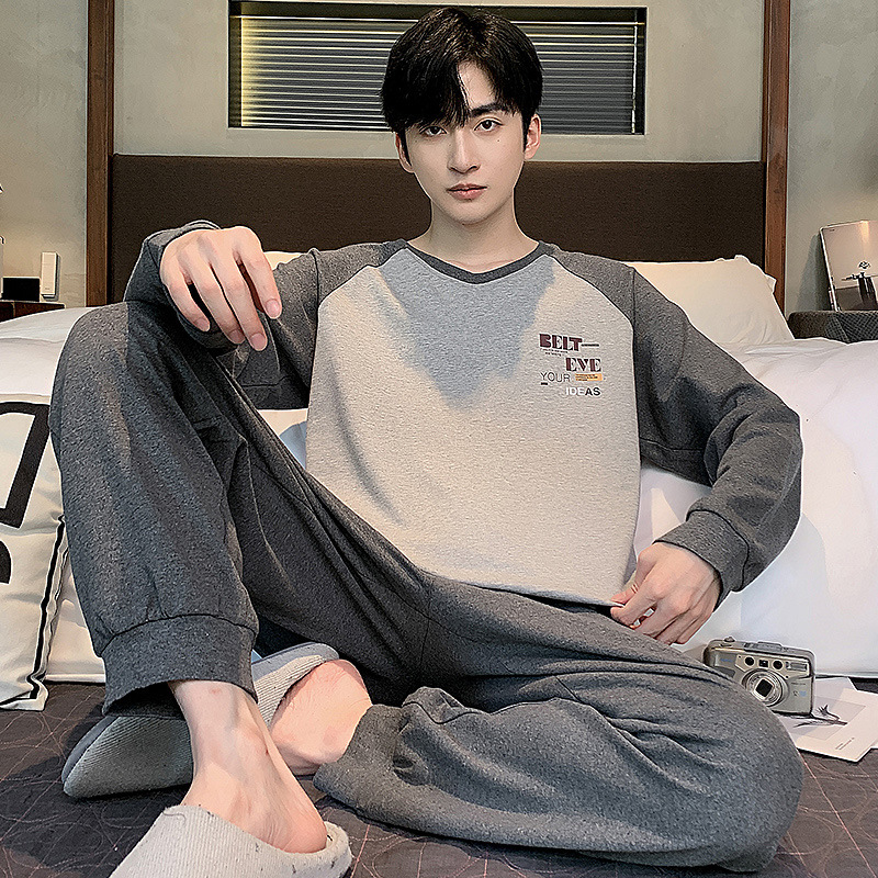 純綿100% 男性パジャマ純綿長袖長ズボン春秋新型カジュアル大サイズ家庭服セット