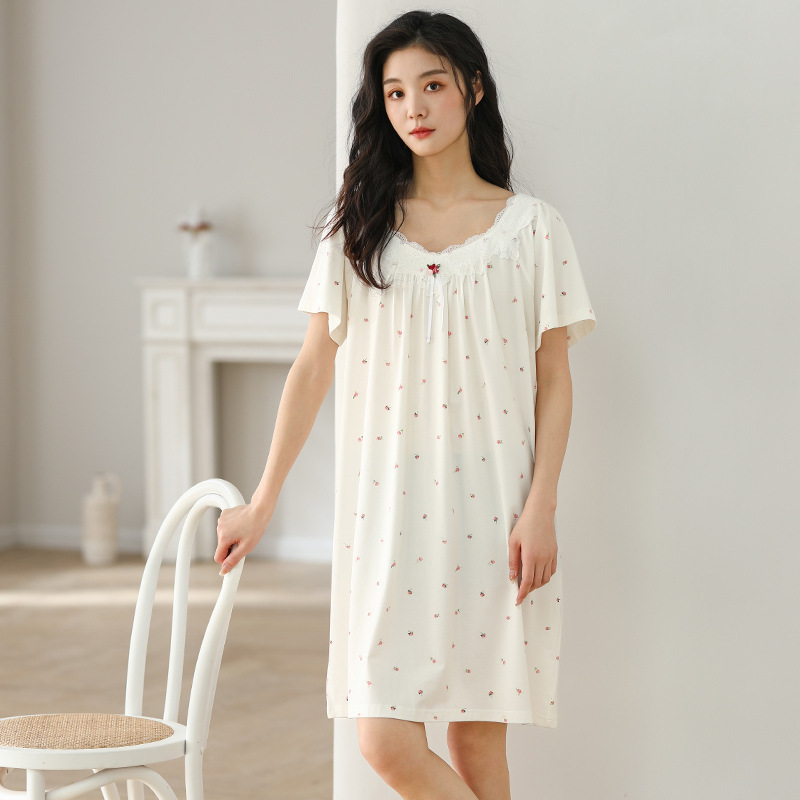 寝ているスカートの女性の夏の半袖のモーダルの涼しさのパジャマの夏の丸首のゆったりした大きいサイズのアンドロメダの純色のワンピース