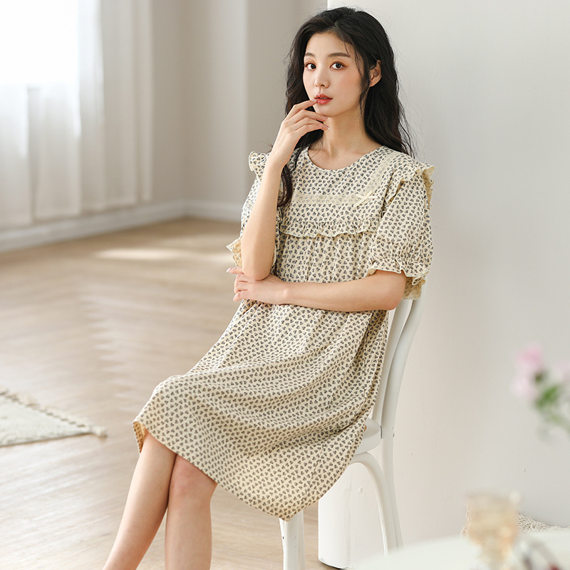 スカートを引っ張ってさわやかな綿の眠るスカートの女性の夏の新型の半袖の中でスカートの家庭服の夏の薄いタイプは純綿のワンピースを着ることができます。