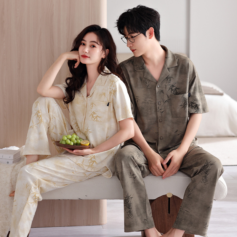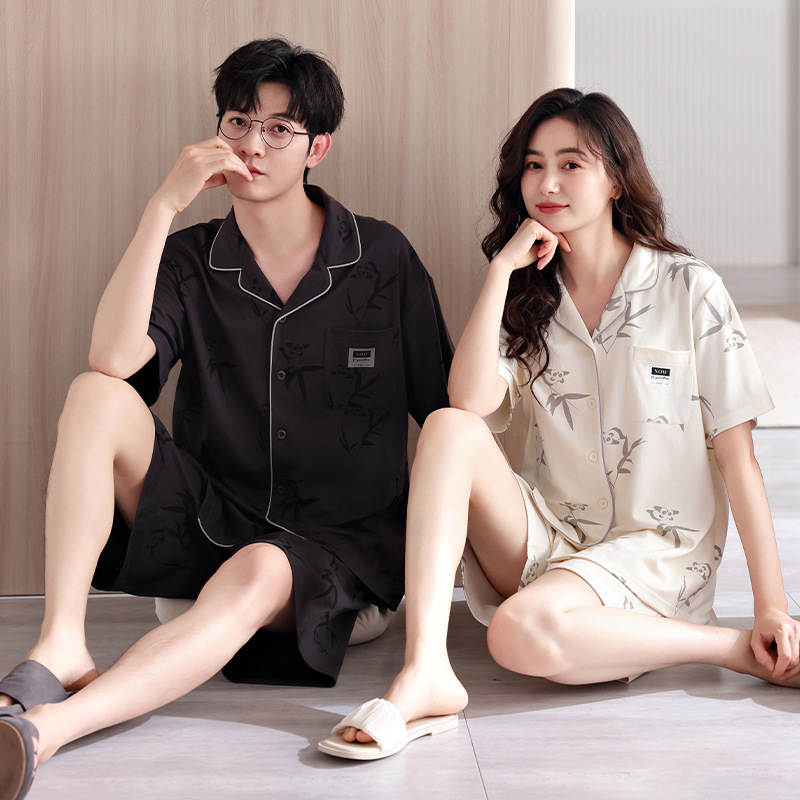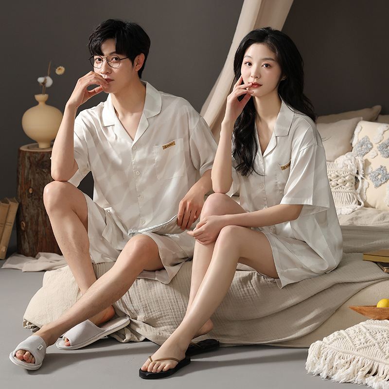 パジャマカップル女性夏氷糸半袖半ズボン薄い家庭服シミュレーションシルクスーツの涼感が着ることができる