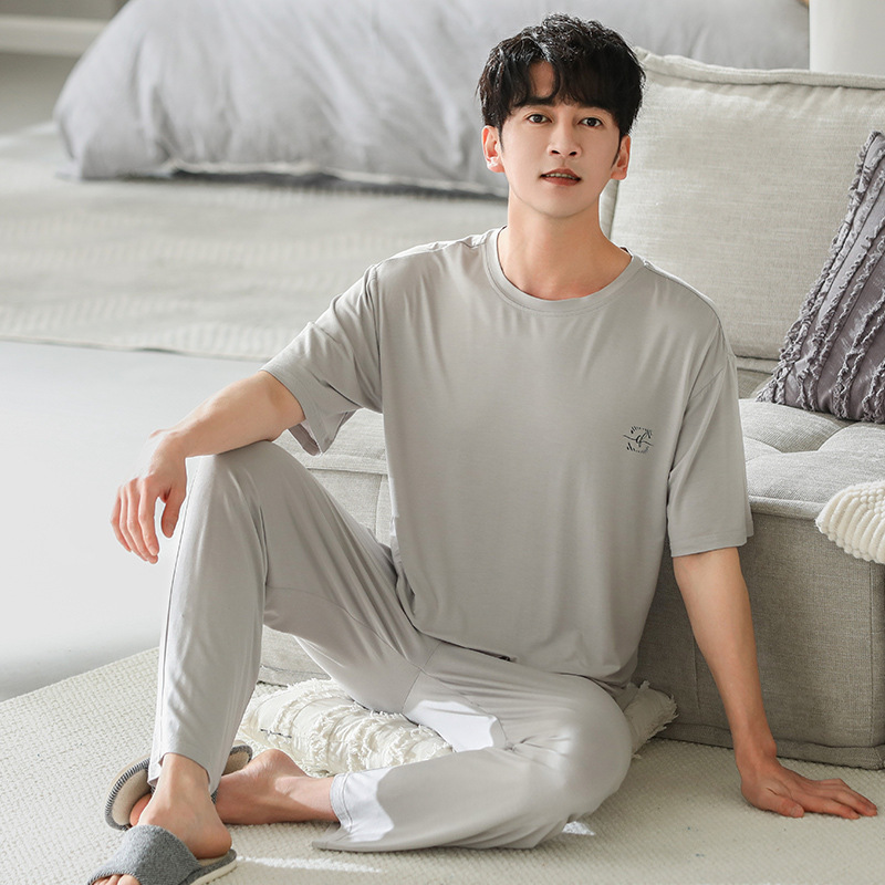 パジャマ男の夏の薄いモデルのモーダル半袖のズボンの新型の涼しさの純色のカジュアルなお父さんの男性の部屋の服