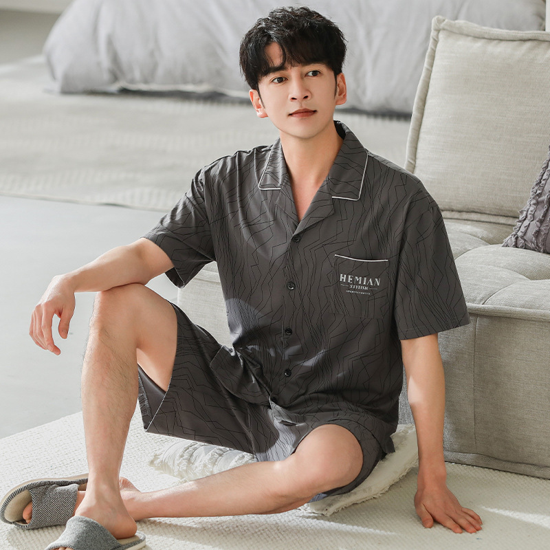 メンズパジャマ夏モーデール半袖ショーツ襟付きカーディガン新商品涼感ホームウェア男性用夏スーツ