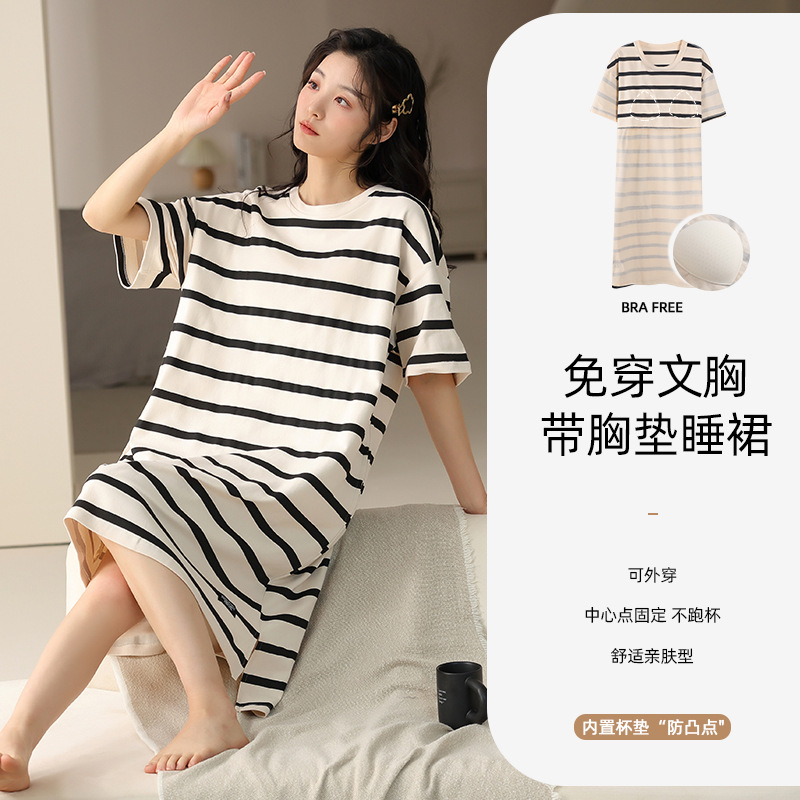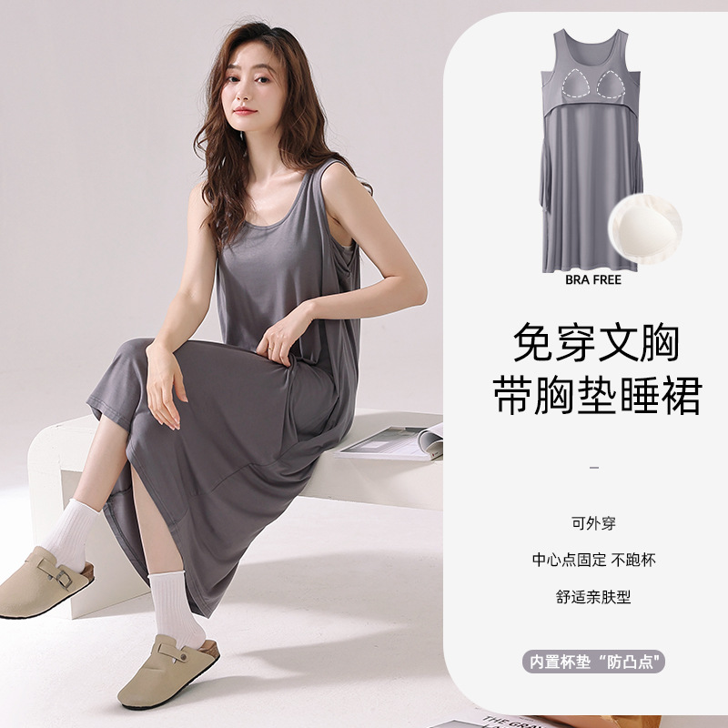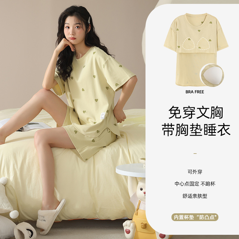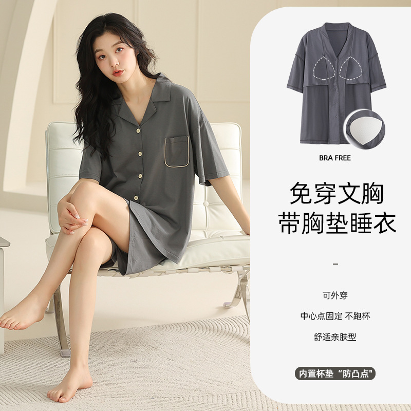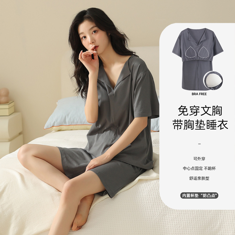 胸パッド付きの寝スカート夏の涼感モーダルビッグパジャマ女性夏の薄い純色半袖妊婦の家の服