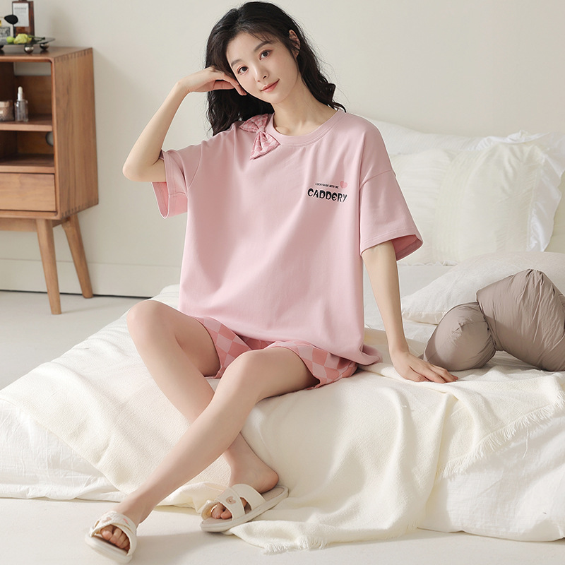 半袖のズボンのパジャマの女性の夏のネットの赤い風の少女の大きいサイズは泡芙の綿の夏のスーツの薄いタイプの女性の夏を着ることができます。