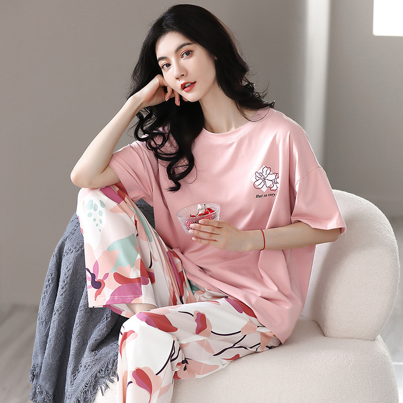 【7a抗菌】パジャマ夏の女性の涼しさの棚のさわやかな綿の半袖のズボンの新型の純綿の家の服のスーツ
