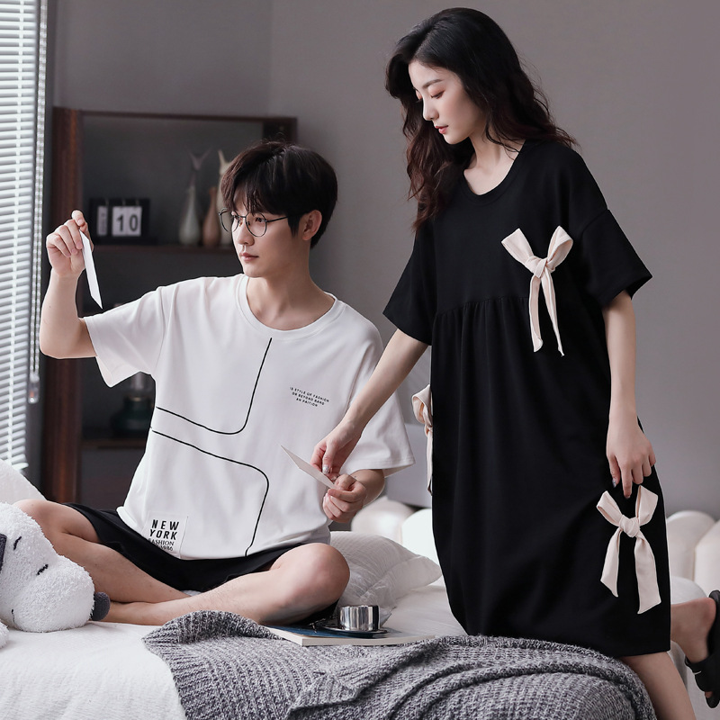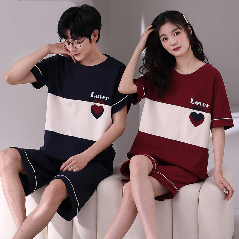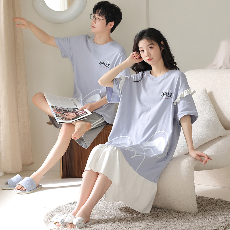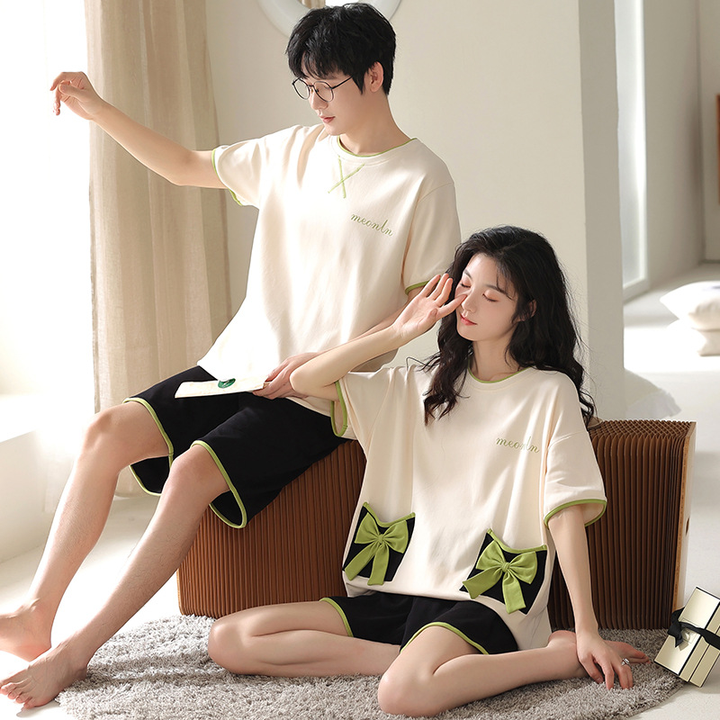 カップルパジャマ夏の新型純綿半袖丸首カバー