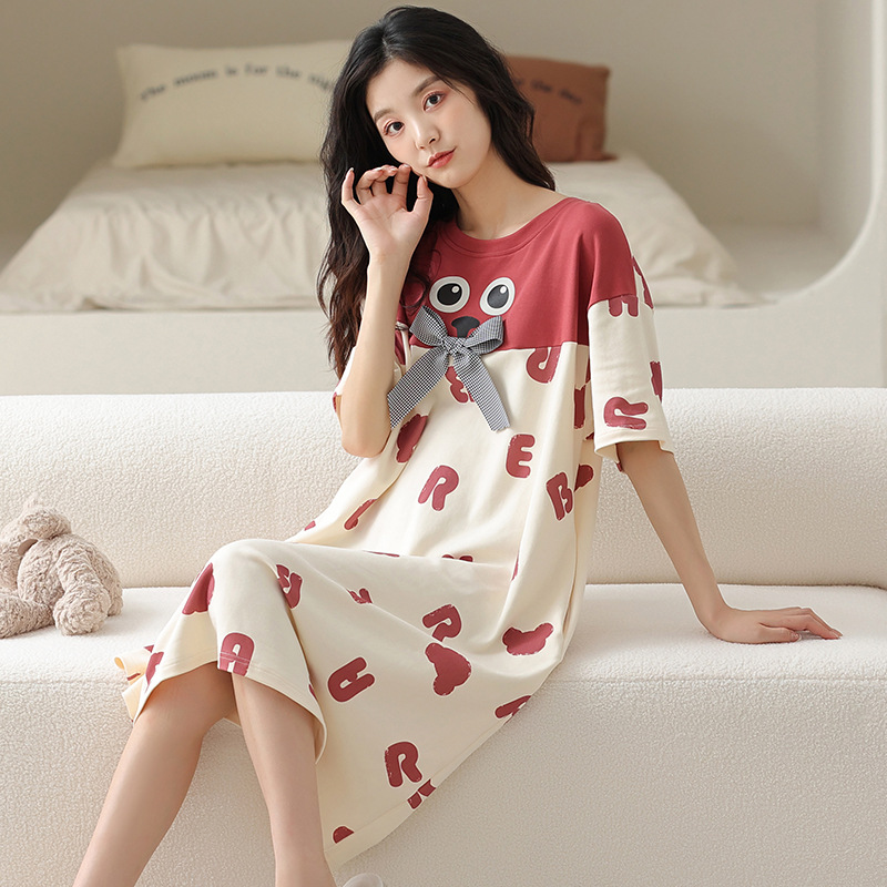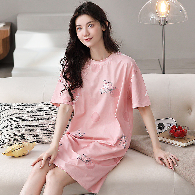純綿のワンピースの夏の女性の半袖のパジャマの夏のゆったりした大きいサイズの綿は薄いパジャマの家の服を着ることができます。