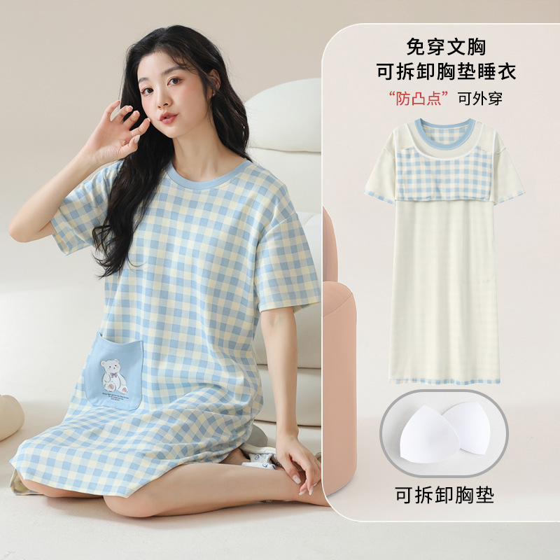 胸パッド付きパジャマ女性夏純綿アニメ少女大サイズは、ワンピースを着て寝ることができます。