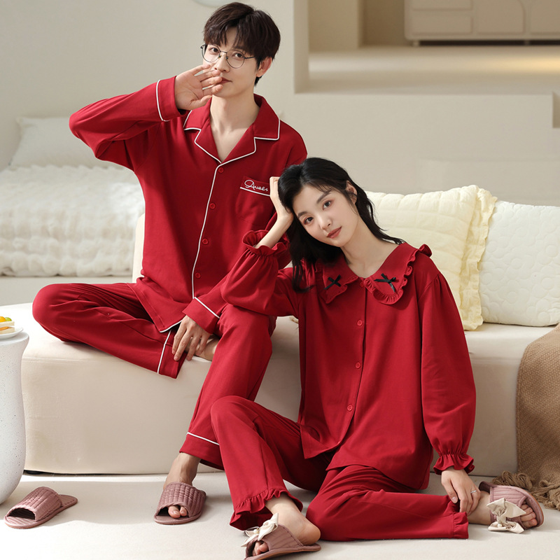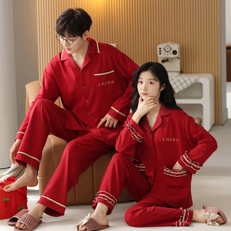 【ヒ】カップル結婚パジャマ秋冬新作純綿新婚赤い本命年純綿長袖ホームウェア女性