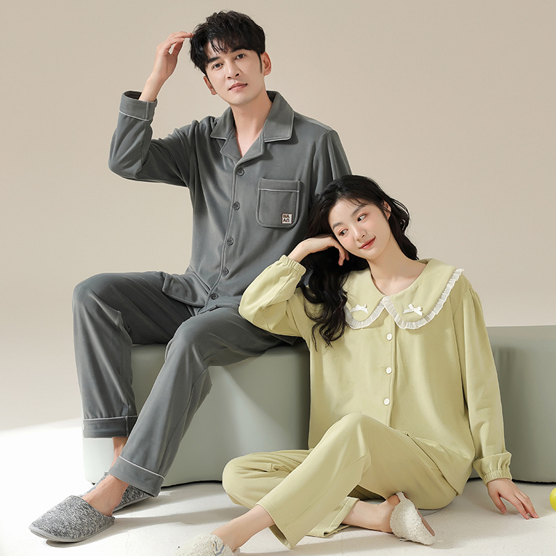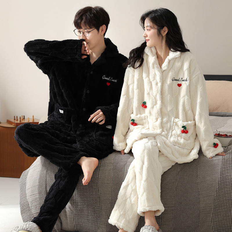【多色】海島パイルパジャマ女性冬少女は保温長袖カップルパジャマ男性ホームウェアを着ることができる