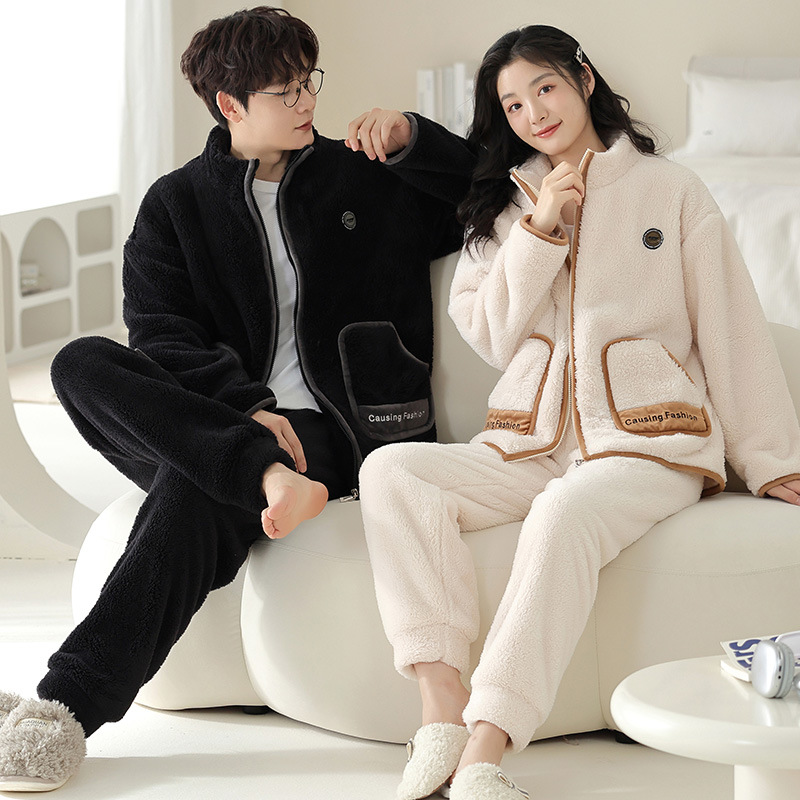 冬のカップルのパジャマの新型立襟レジャースポーツ風学生学院は厚いフランネルの家庭服を着ることができます。
