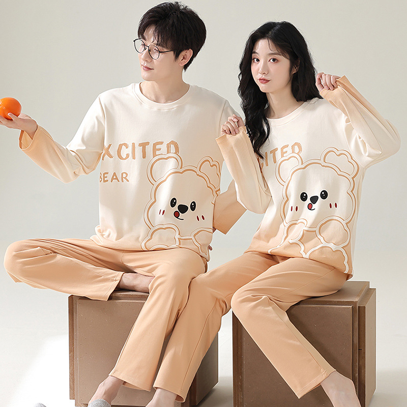 純綿カップルパジャマ新型純綿丸首漫画少女学生は長袖純綿家庭服セットを着ることができる