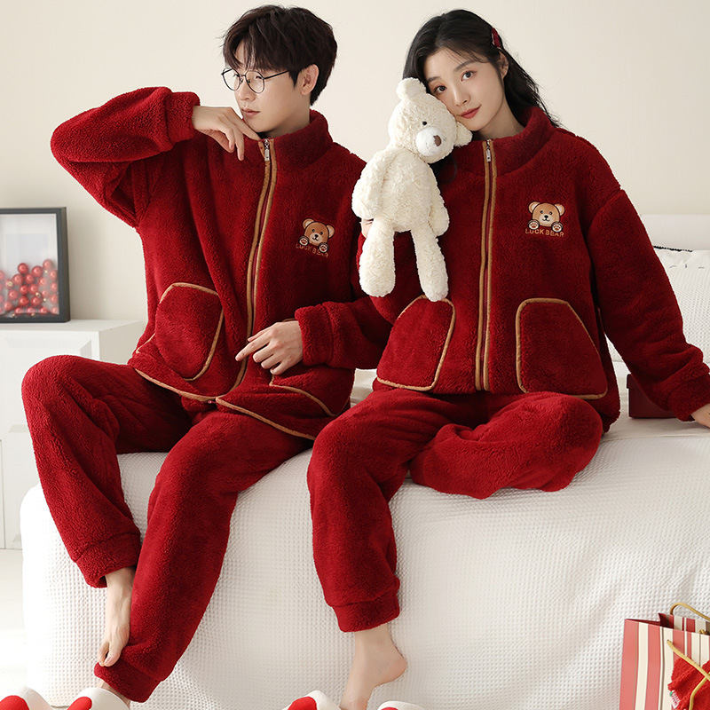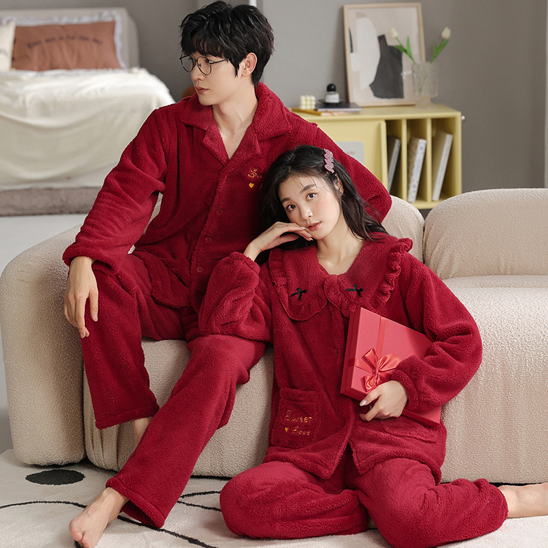 結婚カップルのパジャマ女性冬の新しいフランネルの赤いお祝い新婚本命年サンゴのベルベットの家の服