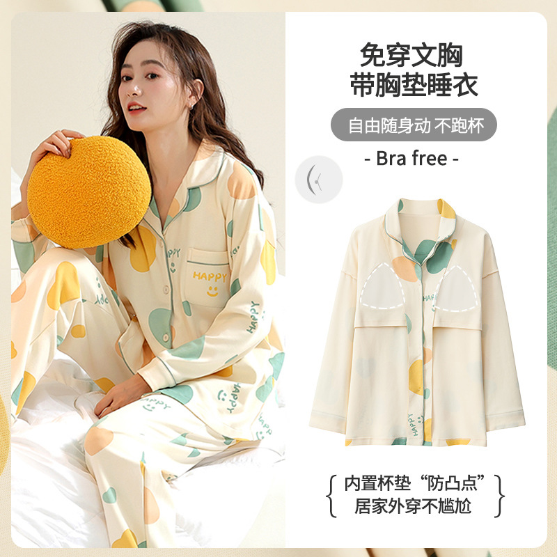 純綿のパジャマの女性秋冬の新型カーディガンは胸のクッションを持っています。