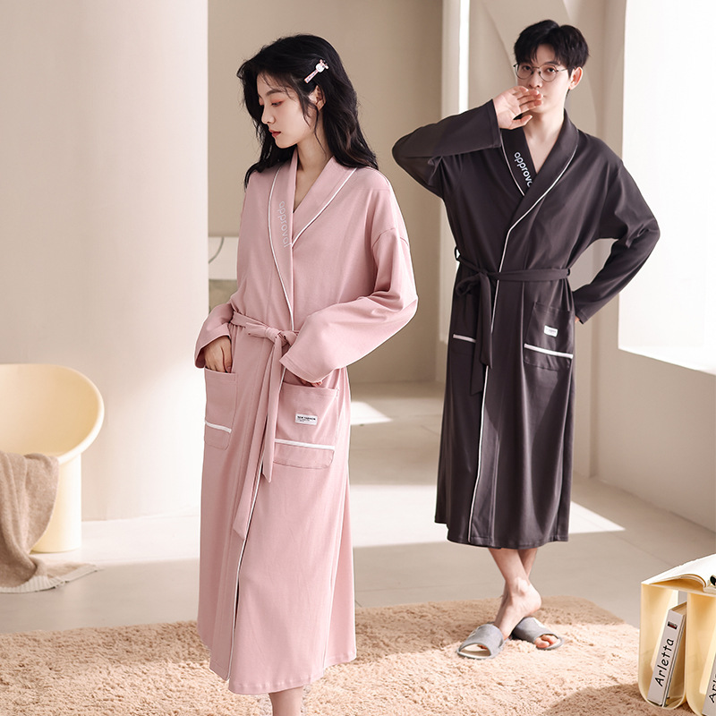 カップルのバスローブ秋冬のワンピースのパジャマ綿の大きいサイズのゆったりした長袖の家庭服秋冬ホテル風のパジャマの女性