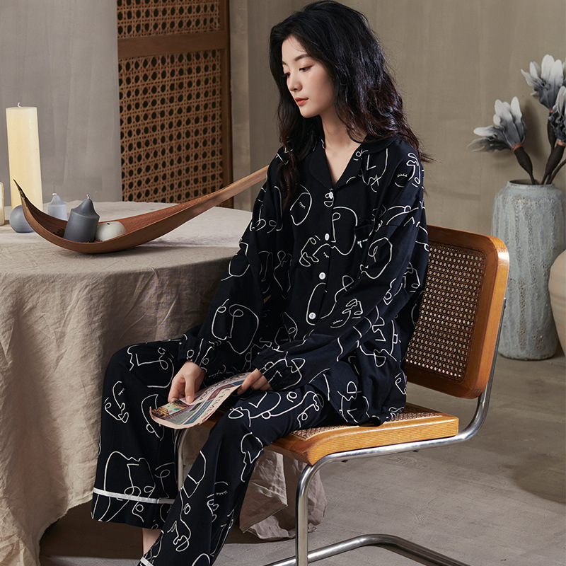 純綿のパジャマの女性は秋に新しい女の子が襟をめくることができます。