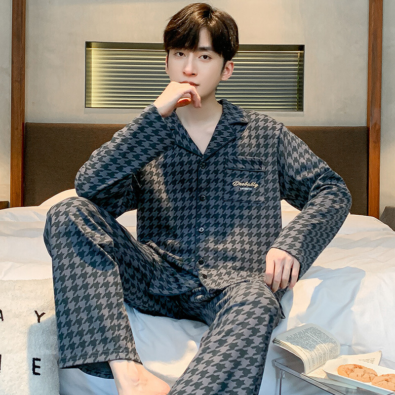 純綿パジャマ男性秋の新商品のカーディガンの大きいサイズは秋冬の厚さの綿の長袖の部屋の服の男性を着ることができます。