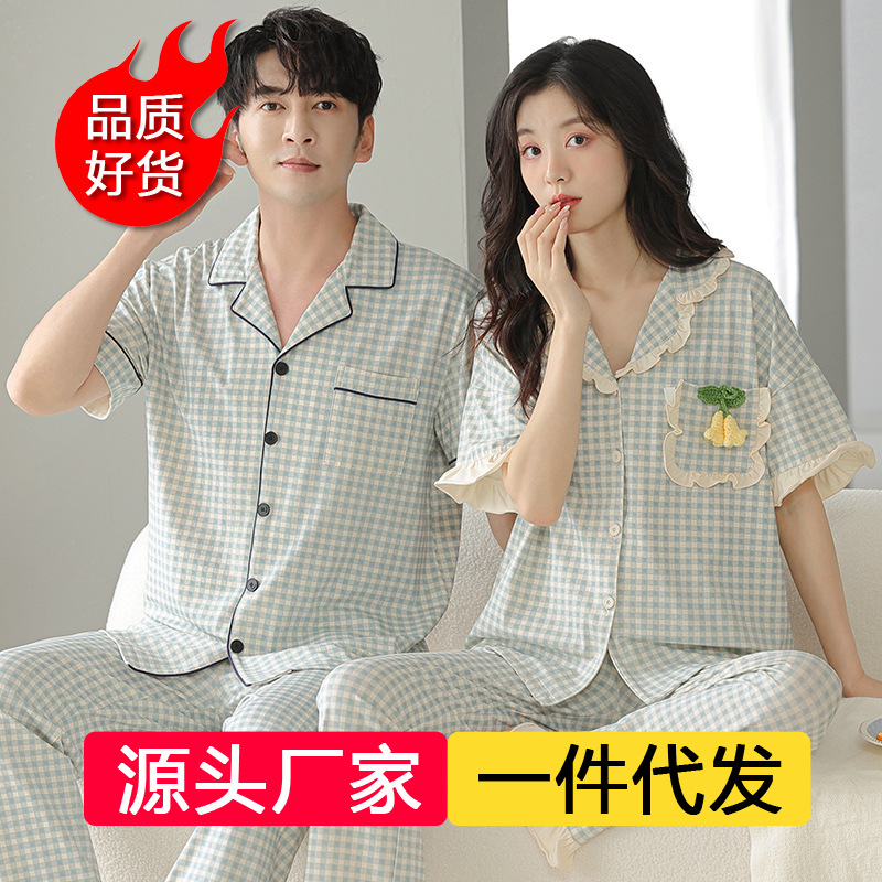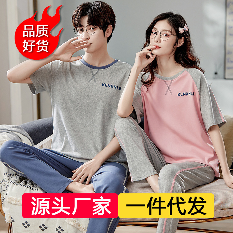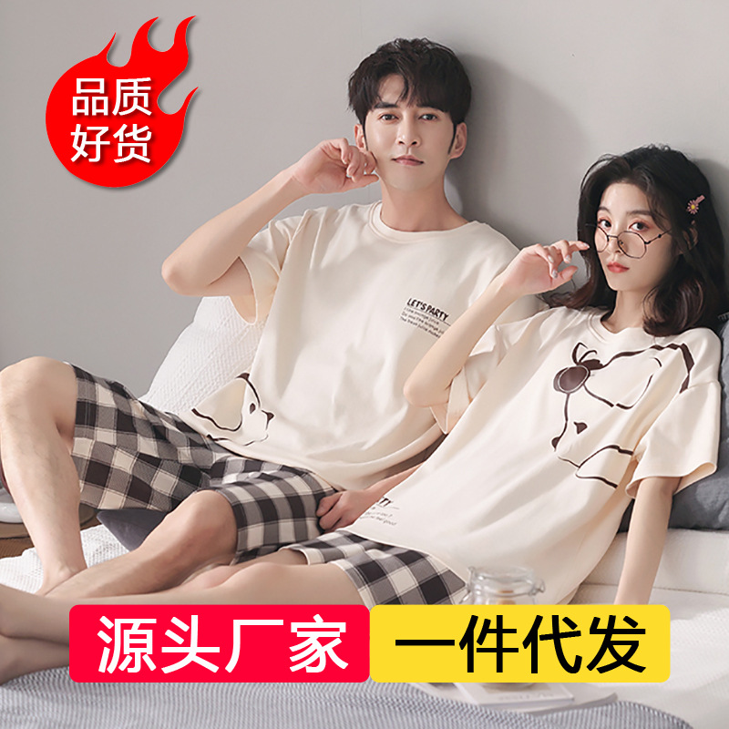 純綿カップルパジャマ男性2023夏新作アニメ少女ミディアムコットンラウンドネック半袖パジャマ女性