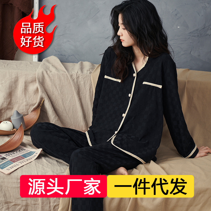 棚を引っ張るのがさわやかな綿のパジャマの女性の春と秋の長袖は大きいサイズの家庭服のカーディガンの秋のタイプの小さい香ばしい風のスーツを着ることができます。